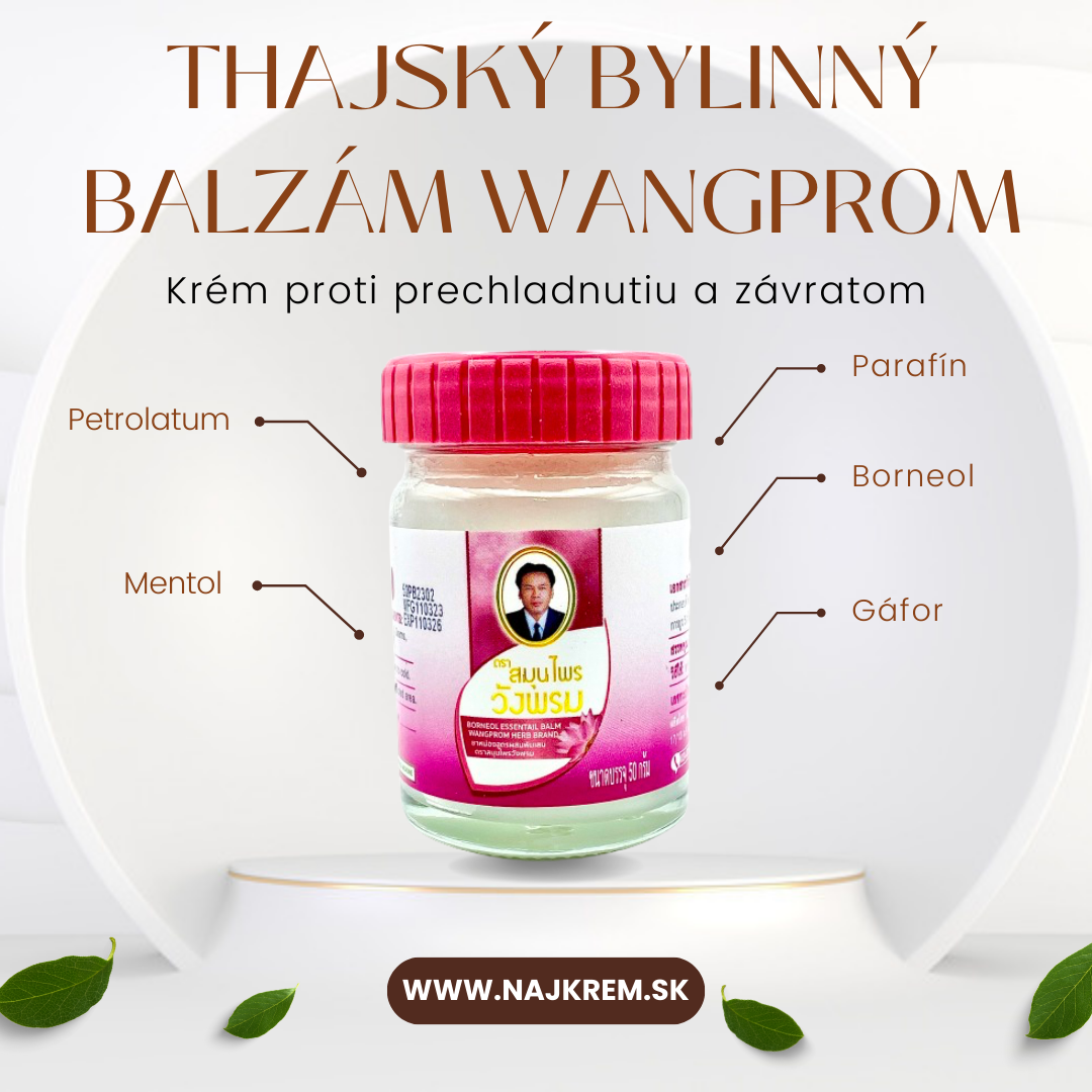 Thajský bylinný balzam Wangprom bol vyvinutý lekárom MUDr. Chalerm Wang Prom s použitím bylín privezených z chrámu Phra Chettuphon Wimon Mangkhalaram (Wat Pho Tha Tien). Radí sa medzi prvých originálnych thajských výrobcov bylinných balzamov.